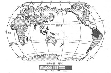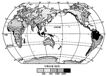 (4)年降水量少于200毫米的地区主要在哪